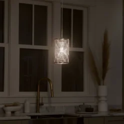With this Silver Braided Metal and Crystal Hanging Lamp from River of Goods, you can install overhead lighting that’s also an ornate work of art. Featuring a polished nickel metal fixture with a woven, braid-like effect circling the design, this overhead light fixture also boasts sparkling faceted crystals in both large and small sizes for a luxe look you’ll love. The hanging lamp hardwires into your ceiling for a seamless style, and is sure to add glam detail to your interior decor when you hang it above your dining table for a chandelier-like effect or install in a walk in closet to create the dressing room of your dreams.