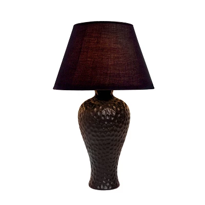 This beautifully designed table lamp made primarily of ceramic features a bendy and curvy shape with an imprint style texture throughout its painted base, in the color of your choice. It is then paired with a matching empire fabric shade that compliments its surrounding environment perfectly while illuminating your space just right.