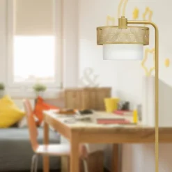 - Metal and crystal ceiling lamp with chandelier for glam interior lighting