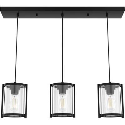 13.5″ 3-Light Bee Modern Farmhouse Iron/Glass LED Pendant Oil Rubbed Bronze/Clear – JONATHAN Y