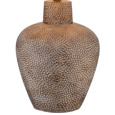 - Hammered-look, textured lamp base. Brown leaf finish. Cast resin construction.