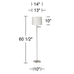 - Set of 2 lamps. Each is 27 1/2″ high overall. Shades are 13″ wide at the top x 14″ wide at the bottom x 10″ high. Weighs 3.7 lbs.