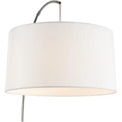 - Fabric drum shades with gold finish finials. 6-foot long cords.