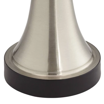 - Silver finish with black finish accents. Metal construction. White drum shades. 8-foot long clear cords with clear plugs.