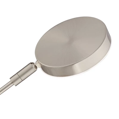 - Satin nickel finish base, arms, and lamp head. Aluminum construction. White acrylic diffuser over the LED array. 7-foot long cord.