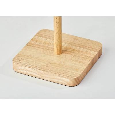Illuminate your space with the clean lines, monochromatic color scheme, and natural materials of the Ellis floor lamp. The lamp features a natural wood square base with softened corners. The natural wood continues up the tall round stem that varies in diameter for a unique silhouette. Crafted of natural woven paper and trimmed with beige fabric along both the top and bottom, the drum shade adds stylish texture. The shade diffuses light from a 150W bulb to fill your space with an inviting, warm glow that can be adjusted between low, medium, and high to suit your brightness needs. Looking for color contrast in your dĂ©cor? The Ellis floor lamp is also available with black wood finish and black fabric trim. Complete your space’s dĂ©cor with the coordinating Ellis table lamp.
