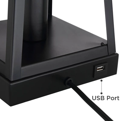 Shore up a transitional or farmhouse setting with this pair of modern industrial table lamps. Each lamp comes in a tapering geometric open column silhouette, which gives a full view of the nightlight feature within, and is topped by a white fabric shade. A four-way switch allows for greater lighting control over the nightlight feature and the main light, and energy-efficient LED bulbs in a vintage Edison style are included for use with the nightlight. Each lamp also has a USB port built into the design, allowing for the charging of smartphones and other devices.