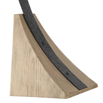 - Dark gray finish over metal pole and accents. Warm gray wood finish over solid wood base.