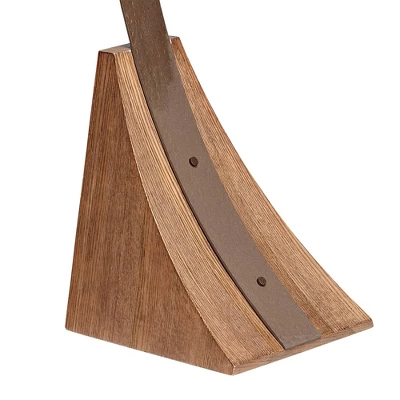 The Oak River collection from the Franklin Iron Works brand offers a line of stylish floor lamps that bring a beautiful organic style to any setting. This Mission-style arc floor lamp comes in a widely arching metal frame dressed in a dark rust finish. A solid wood base at the bottom provides stability and balance. The amber mica shade is fashioned from naturally occurring minerals. Please note – slight color variations may occur in the shade.