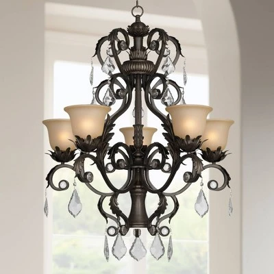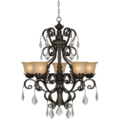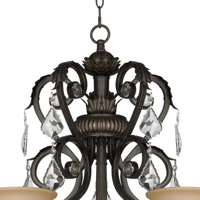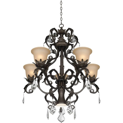- Crystal droplets for sparkle. French bronze finish. Amber glass.
