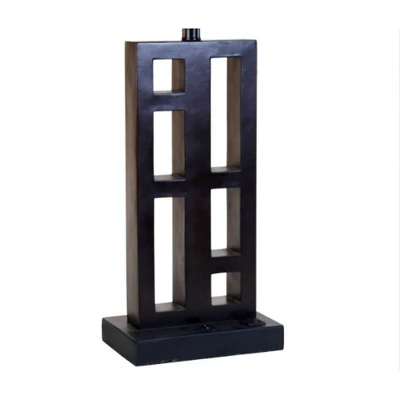 Featuring a geometric frame with an expresso finish and an off white fabric shade, the Liam Table Lamp has a unique appearance that is still versatile enough to work with any dΓ©cor style. The rectangular frame has several horizontal and vertical bars in the center, creating an openwork pattern of smaller rectangles. Additional artistic details, such as the matching trim on the hardback rectangular shade, make this table lamp a striking fixture for an office, bedroom, or living room. Due to lighting and monitor differences, actual colors and finishes may vary slightly from what appears online.