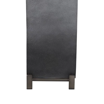 - Slate gray lamp base with a stone-like texture, a heather gray linen shade, and a dark gray iron footed base