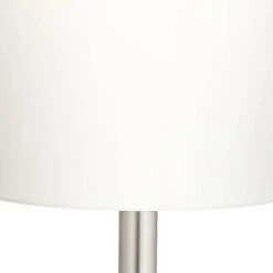 A classic design in clean, sleek tones. This semi-flushmount ceiling light has a hand-crafted white linen drum shade that pairs beautifully with a brushed nickel finish. A frosted acrylic diffuser at the bottom softens the glare of light and guarantees gentler illumination.