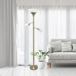 2 Light Restoration Mother Daughter Floor Lamp With Marble Glass Bronze – Elegant Designs