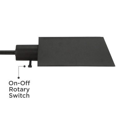 - Dark bronze finish over metal construction. Adjustable swing arm is ideal for reading.