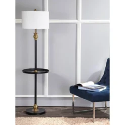 The oil-rubbed bronze finish and greige linen shade are the perfect low-key neutrals for modern interiors. Two-light design includes an adjustable reading lamp and USB charging port. The spare, minimalist design of these lamps is ideal for industrial, farmhouse, or coastal interiors. Eco-friendly 5W LED bulb included. Takes 2 bulbs and compatible with TYPE “A” 100W or CFL 23W or LED 12W/TYPE “G” 40W or CFL 13W or LED 9W. Color Temperature: 2700K. CRI: 80. Before cleaning any lamp shade or fixture, disconnect the power source. Wipe with a soft, dry cloth. Avoid the use of chemicals and household cleaners as they may damage the finish.
