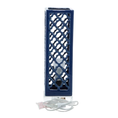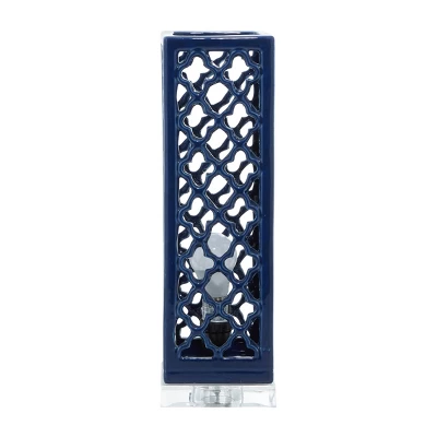 - This porcelain upplight features a standing boxed lamp design filled with lattice pattern cut-out accents