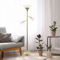 Torchiere Floor Lamp With 2 Reading Lights And Scalloped Glass Shades White – Lalia Home