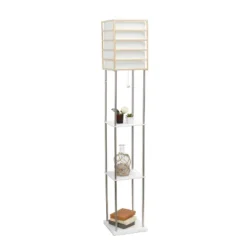 Metal/Wood Etagere Floor Lamp With Storage Shelves And Linen Shade Brushed Nickel – Lalia Home