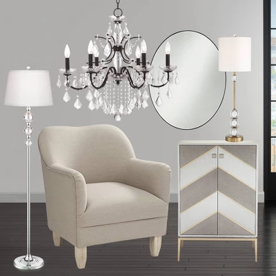 - Traditional six-light crystal chandelier from the Vienna Full Spectrum brand.