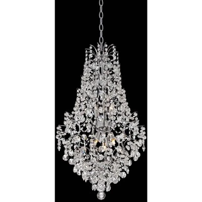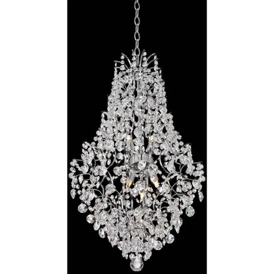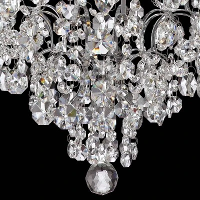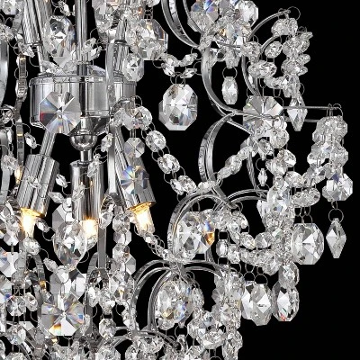 - Clear crystal strands and droplets. Chrome finish canopy and accents.